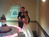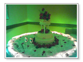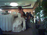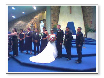 The reception was fun. Divina had Airport Hilton provide everything, including the cake (which was pretty good, almost as good as one of Tita Rose’s wedding cakes, so I was mighty impressed). The staff did a wonderful job. They even swept the dance floor after some of the glass from their light fixture broke during the bouquet toss. It was funny because eveyrone had to clear the dance floor and everything stopped during the clean-up so in order to fill the time the DJ started playing the “Married With Children” theme song.