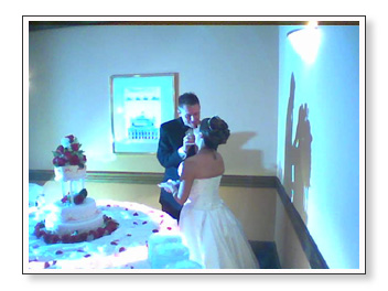 The reception following the ceremony was held at Airport Hilton. Brian and I drove all around West Wichita in search of a Commerce Bank ATM so I could withdraw cash for the cash bar and possibly the dollar dance. We came across a Boeing Wichita Credit Union, Legacy, a couple of Bank of America locations, Emprise, Sunflower, several Intrust Bank branches and a few others but could not find a Commerce Bank at all. Finally I talked Brian into going back to West 21st Street where I knew for sure there would be one. I didn’t insist at first because he was convinced that there we would find one on the way to Airport Hilton but there wasn’t so we had to back-track. Anyway, we finally got our cash and we made it to the reception with our gift in tow: a $50 gift certificate to one of Brian’s favorite stores, Williams Sonoma, and a Nine Months DVD, which I thought would be good for a few laughs since Divina happens to be pregnant.