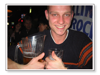 It was really funny because on the way to dinner at Old Chicago, I was trying to call Renee from Brian’s phone. I had sent Renee’s mobile number as a business card to Brian’s phone because I knew that I wouldn’t be able to fit my phone with my Canon SD10 in my Dooney and Bourke micropurse that mom had gotten my for Christmas (which I absolutely love, by the way). It rang and rang and rang. I figured she probably didn’t recognize the phone number since I’d never called her from Brian’s phone before. When it finally got to the voicemail I stopped and thought, “That’s strange.. She sounds just like me.” And to think I hadn’t even started drinking yet! It sounded like me because it was me! I had called my phone because Brian saved the wrong phone number (he saved my number instead of Renee’s) to his phone on accident.