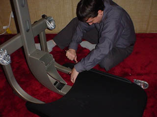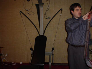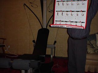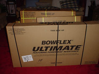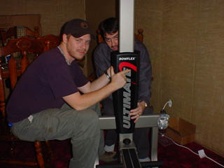 The Bowflex came on Monday — way earlier than expected. They said five weeks and it came in two! I couldn’t believe it. I was figuring that with the holidays we probably wouldn’t be seeing it until the end of the month. Anyway, it came in four boxes and when we first started opening them up it really seemed intimidating. “Some assembly required” is truly an understatement. You know how they tell you that you’ll see results within six weeks? Well, that’s because just putting it together is a workout! We didn’t get started until almost eleven (after Brian got home from work and had a bite to eat) on Monday night. Brian tricked Kevin into coming over and helping us assemble it after he got off work at midnight. By three in the morning they were playing with it already. Too bad we all had to go to work the next day!