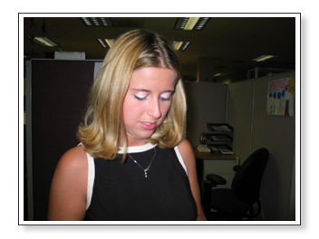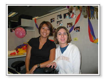 The next day I took pictures of Ashley and Erin in Ashley’s festively-decorated cubicle.